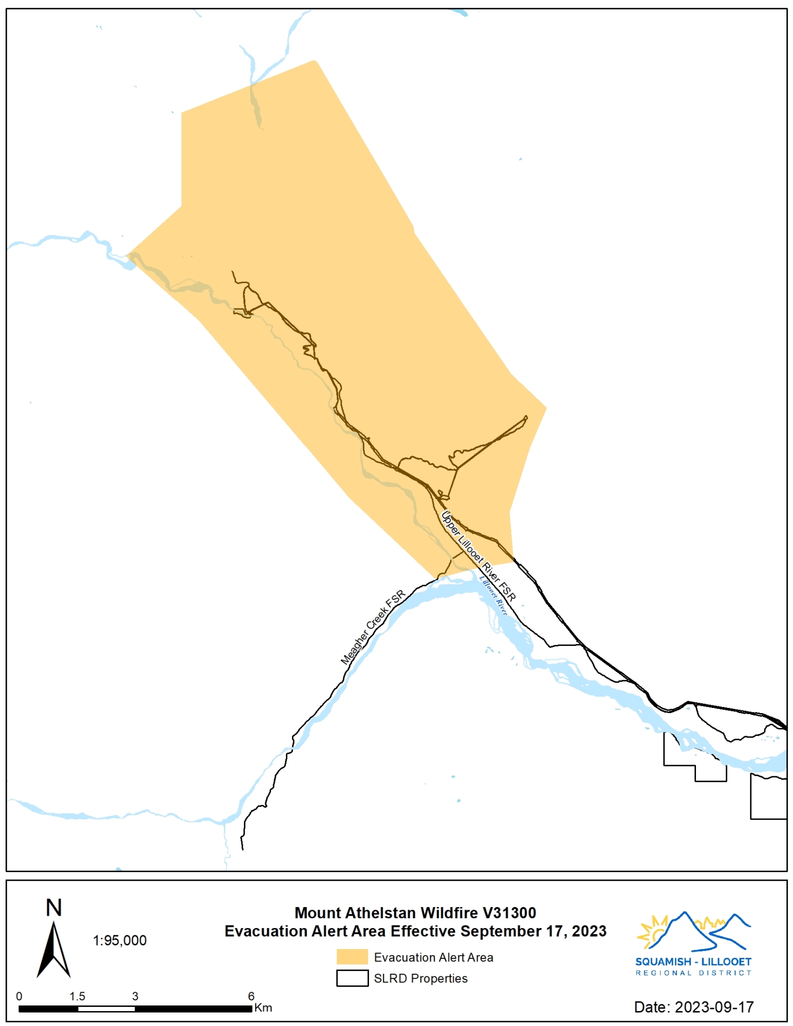 Based on recommendations from the BC Wildfire Service, an Evacuation Alert has been issued by the Squamish-Lillooet Regional District due to the Athelstan Mountain Wildfire (V31300) burning out of control in the Meager Creek area.